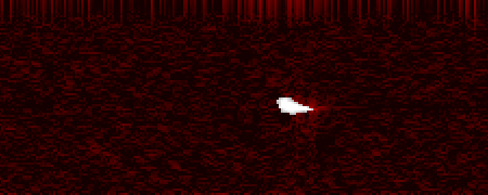 An example spectrogram is shown below (6 seconds duration, 900 Hz bandwidth), the image generated by vtping. The white pixels are those that the detection algorithm in vtping decided are part of a meteor ping. The red pixels are background.