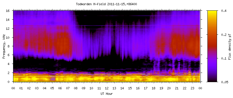 An example is available at this link which displays about 35 minutes of activity captured with 3-axis reception on 23rd Jan 2018. North is at the top with the center DC and the perimeter at 24kHz. Circularly polarised whistlers are arriving almost directly from above. The flashes in the north-east are beeps of the Alpha navigation system and there is sferic activity to the west and south west.